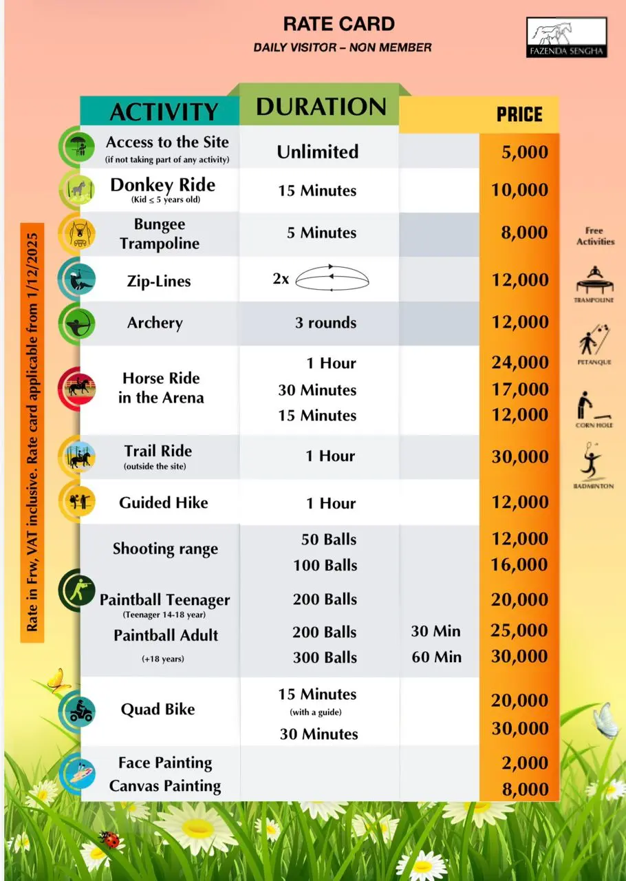Explore πΏ nature, π fun, and π relaxation at Fazenda Sengha. Choose from exciting activities like zip-lines, π trail rides, π― archery, and more β for a full day of family fun and unforgettable moments!