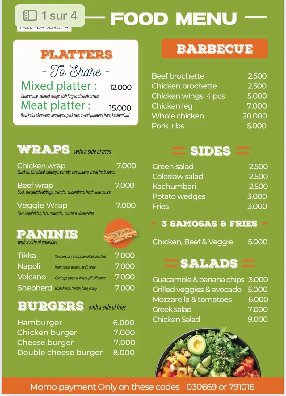 From juicy barbecue platters to loaded burgers, wraps, and paninis, our kitchen is where cravings meet flavor. Pair your bite with a fresh salad, crispy samosas, or golden fries, then wash it all down with a smooth cocktail, an icy milkshake, or your favorite brew. At Fazenda, every meal hits different β fresh, fun, and full of good vibes! ππΉπ₯